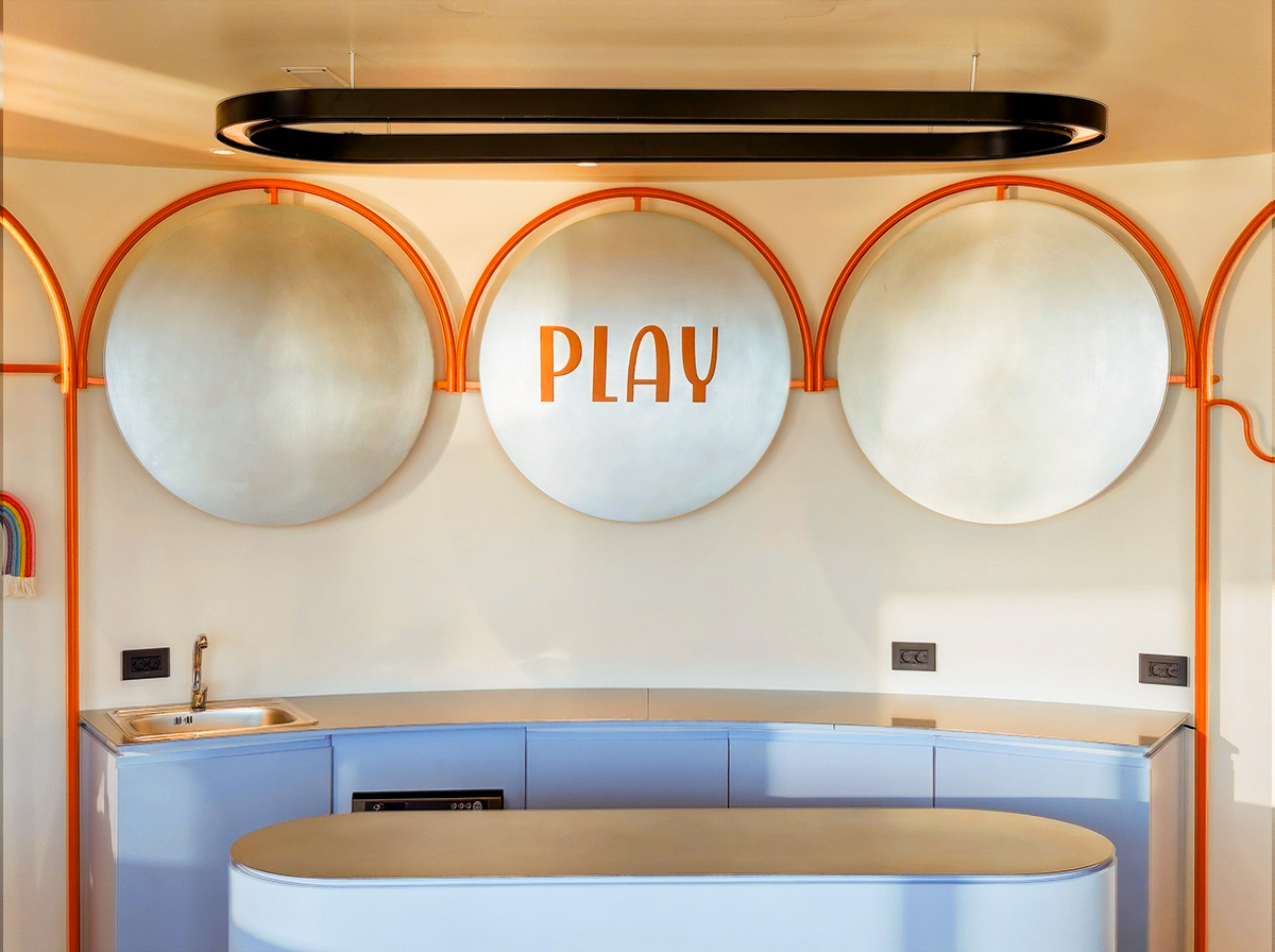 Responding to this geometry, the design introduces a continuous perimeter storage system articulated through an arch motif. This element structures the space while reinforcing a child-friendly architectural language, transforming storage into a backdrop that frames the interior.