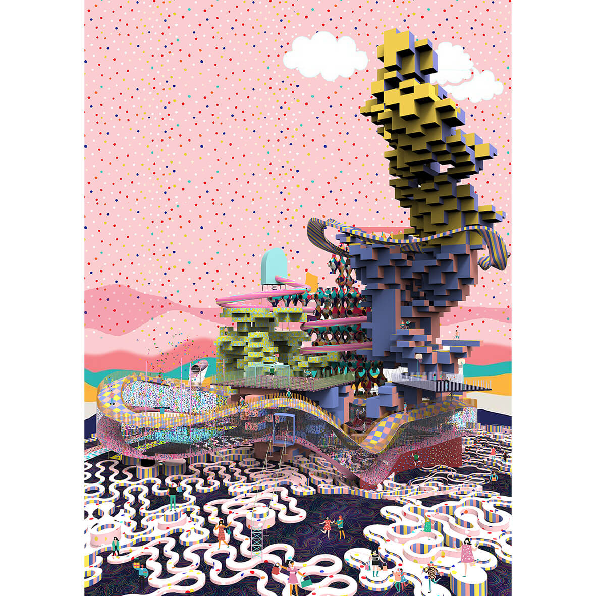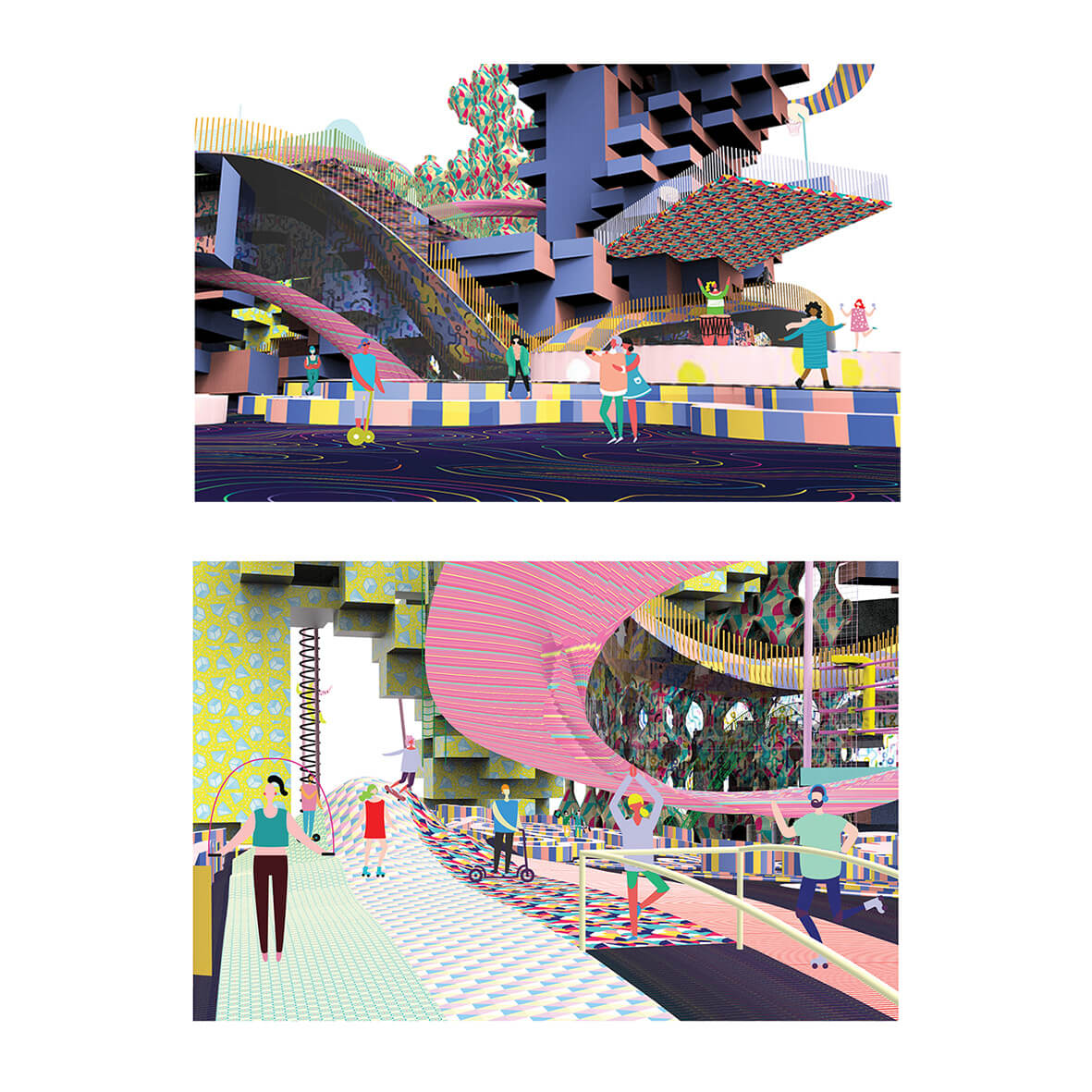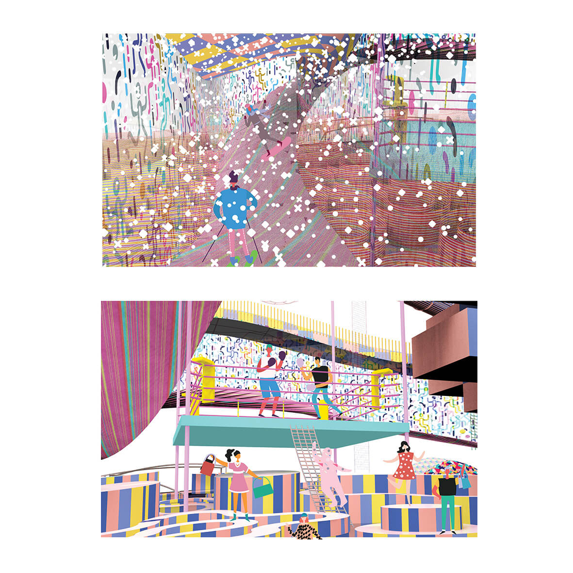 This utopian proposal reimagines the retail space as an experiential testing ground rather than a place of purchase. Instead of static product display, the project introduces a dynamic environment where visitors can interact with and test products through playful, scenario-based experiences.